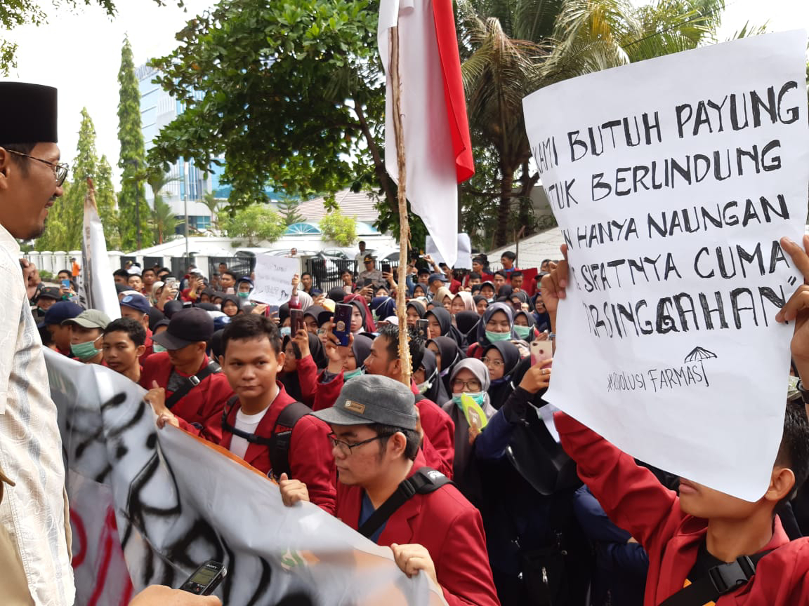 "Berdasarkan informasi yang kami terima dewan melakukan reses. Kami hanya meminta agar aspirasi ini bisa disampaikan ke DPR RI," ujar Korlap Aksi, Ramadhan.