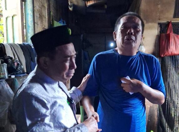 BERITABANJARMASIN.COM - Tangis Saiful Rahim warga Kelurahan Pangeran Banjarmasin Utara, pecah saat Wakil Wali Kota Banjarmasin Arifin Noor serahkan langsung bantuan paket sembako, Minggu (31/3/2024).